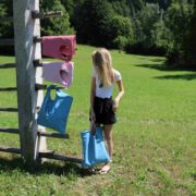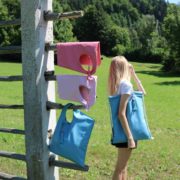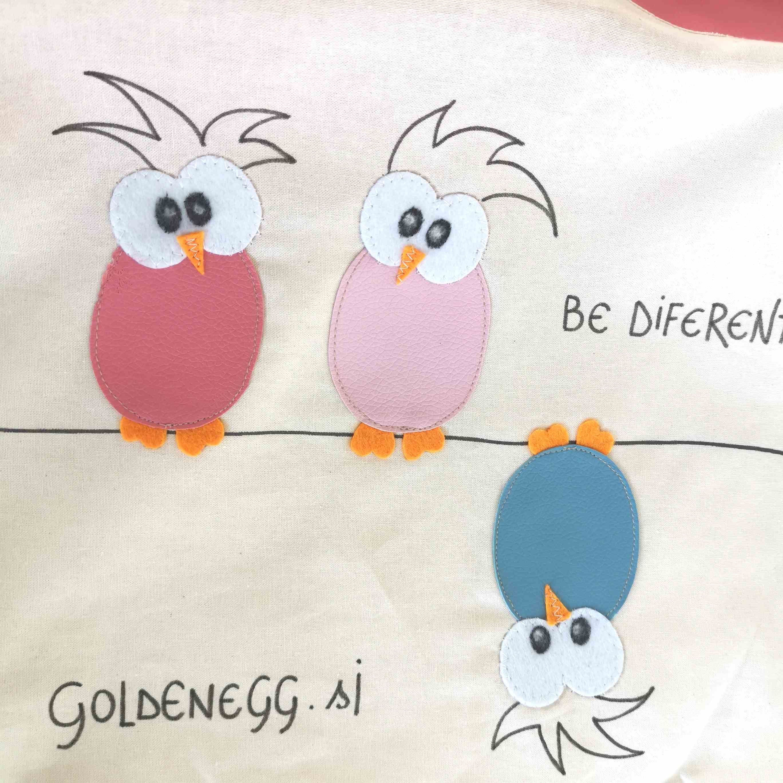 Torbica je podložena in ima zabavno, ročno izdelano aplikacijo na podlogi, ter dva priročna žepka.
