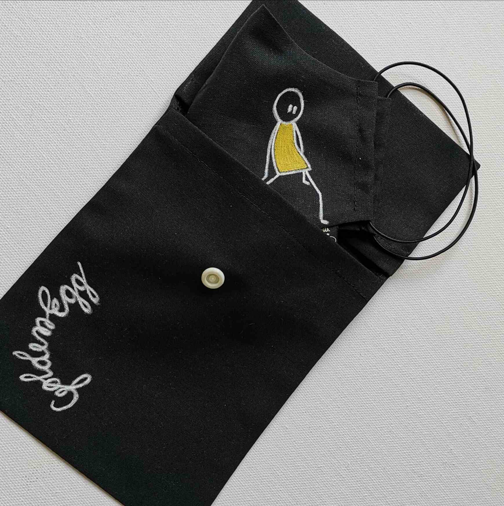 Obrazna maska z ročno poslikano aplikacijo in torbico za shranjevanje.