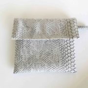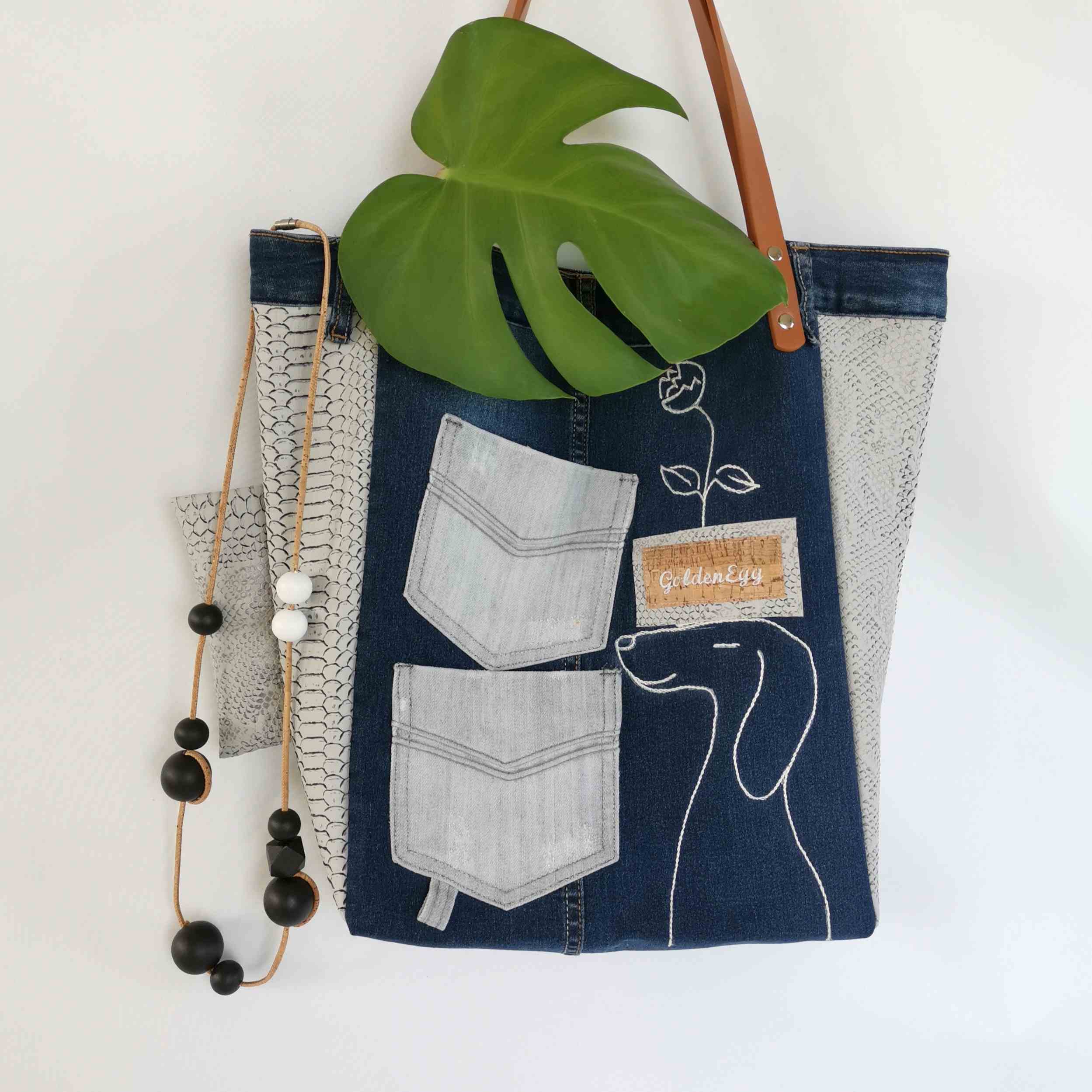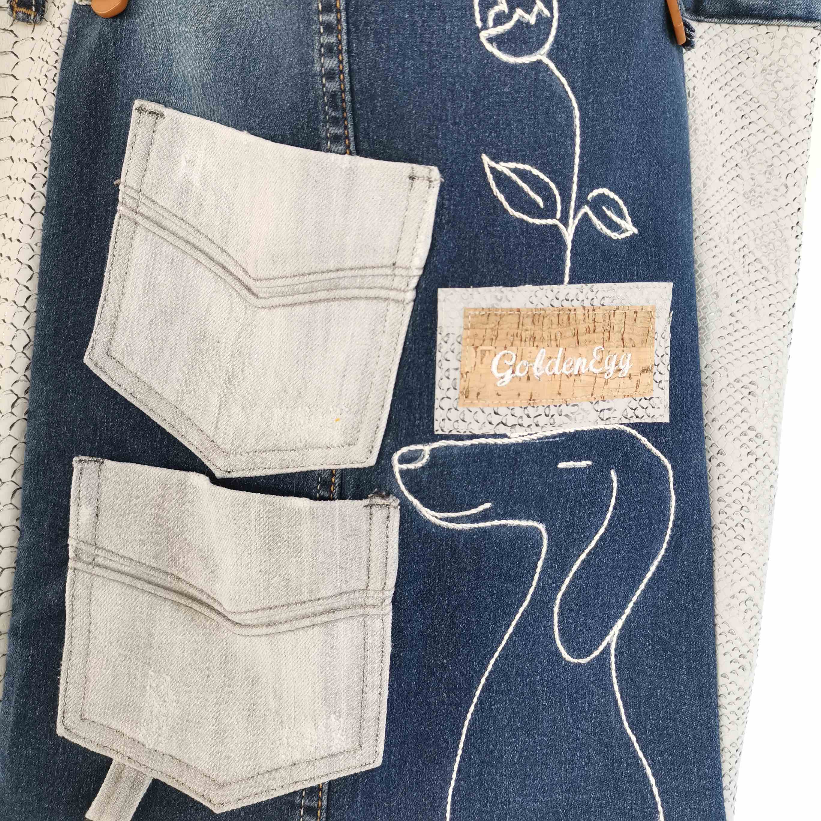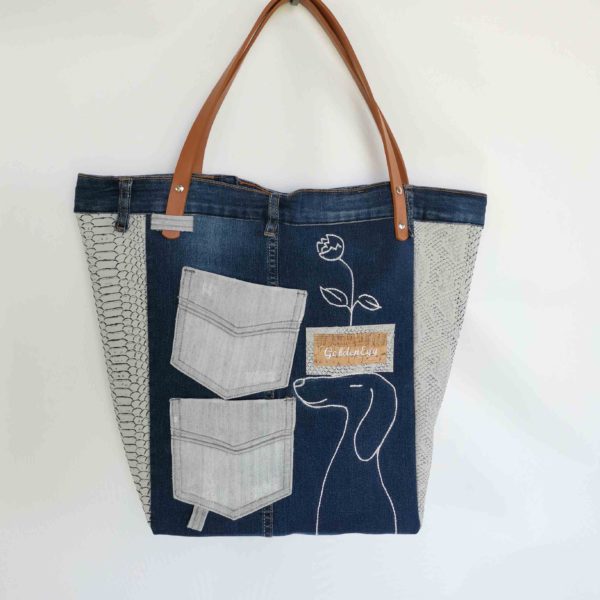 Unikatna torbica prostornega formata v atraktivni kombinaciji materialov in ročno vezeno aplikacijo.