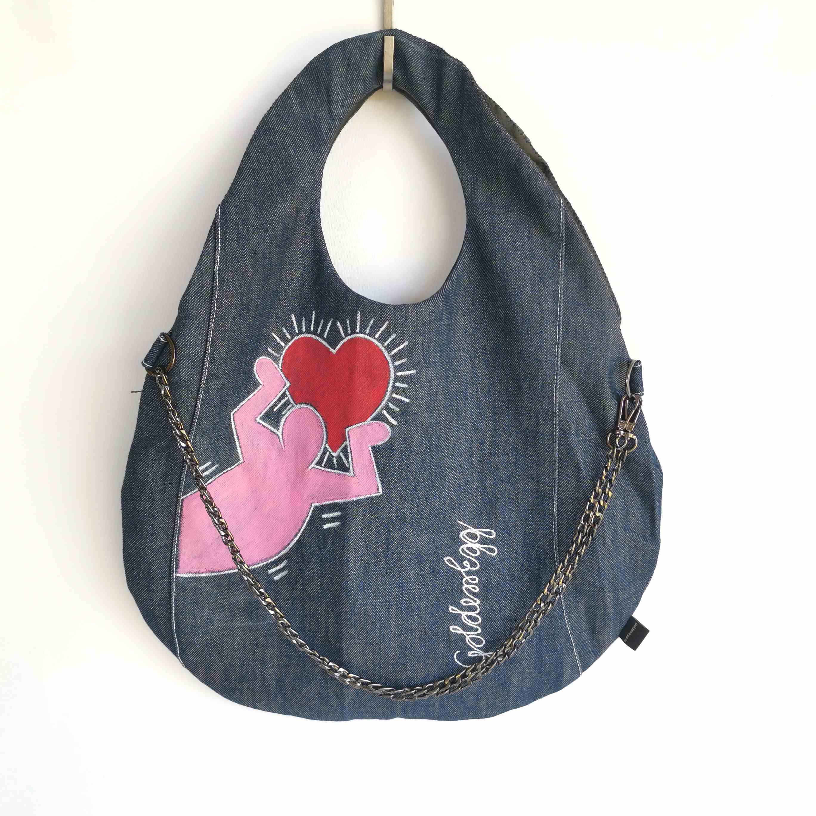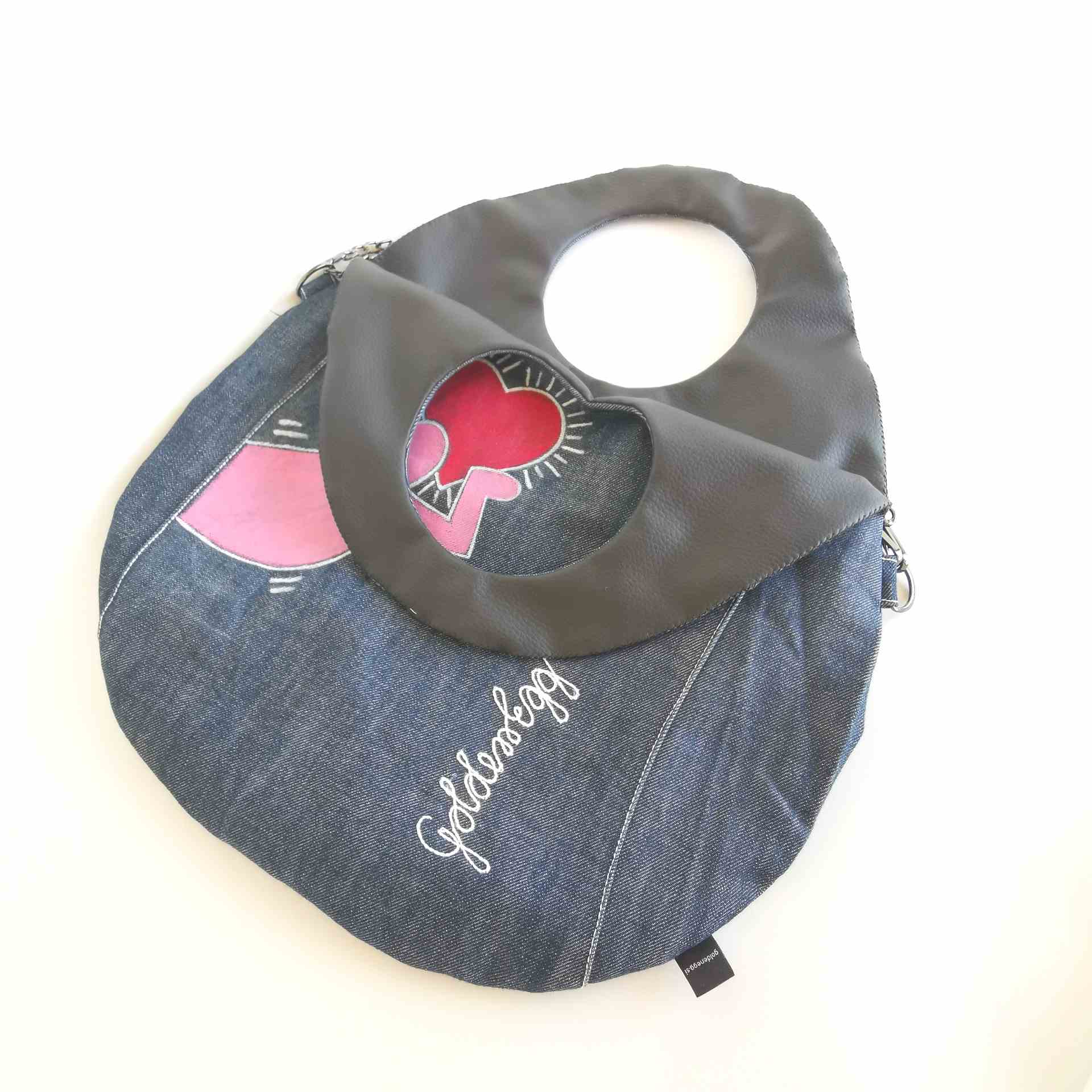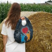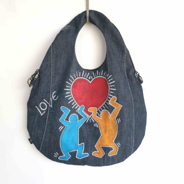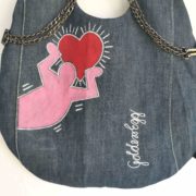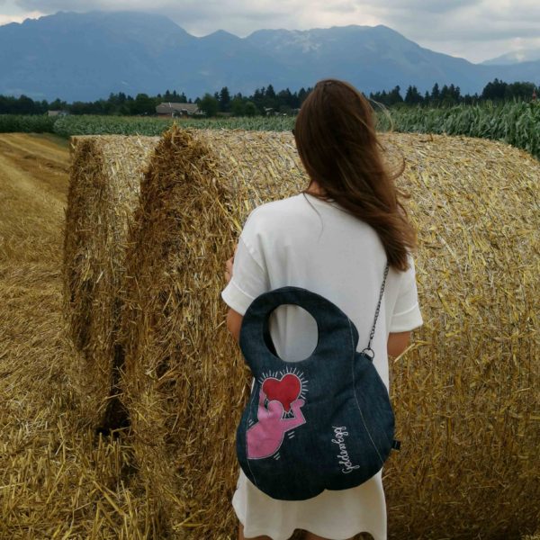 Unikatna jeans torbica z ročno poslikavo, ki vsekakor pritegne pogled in ponuja mnogo kombinacij nošenja (prednja ali zadnja stran, na eni rami, z lično verigo čez telo…) in popestritev še tako preprostih “outfitov”.