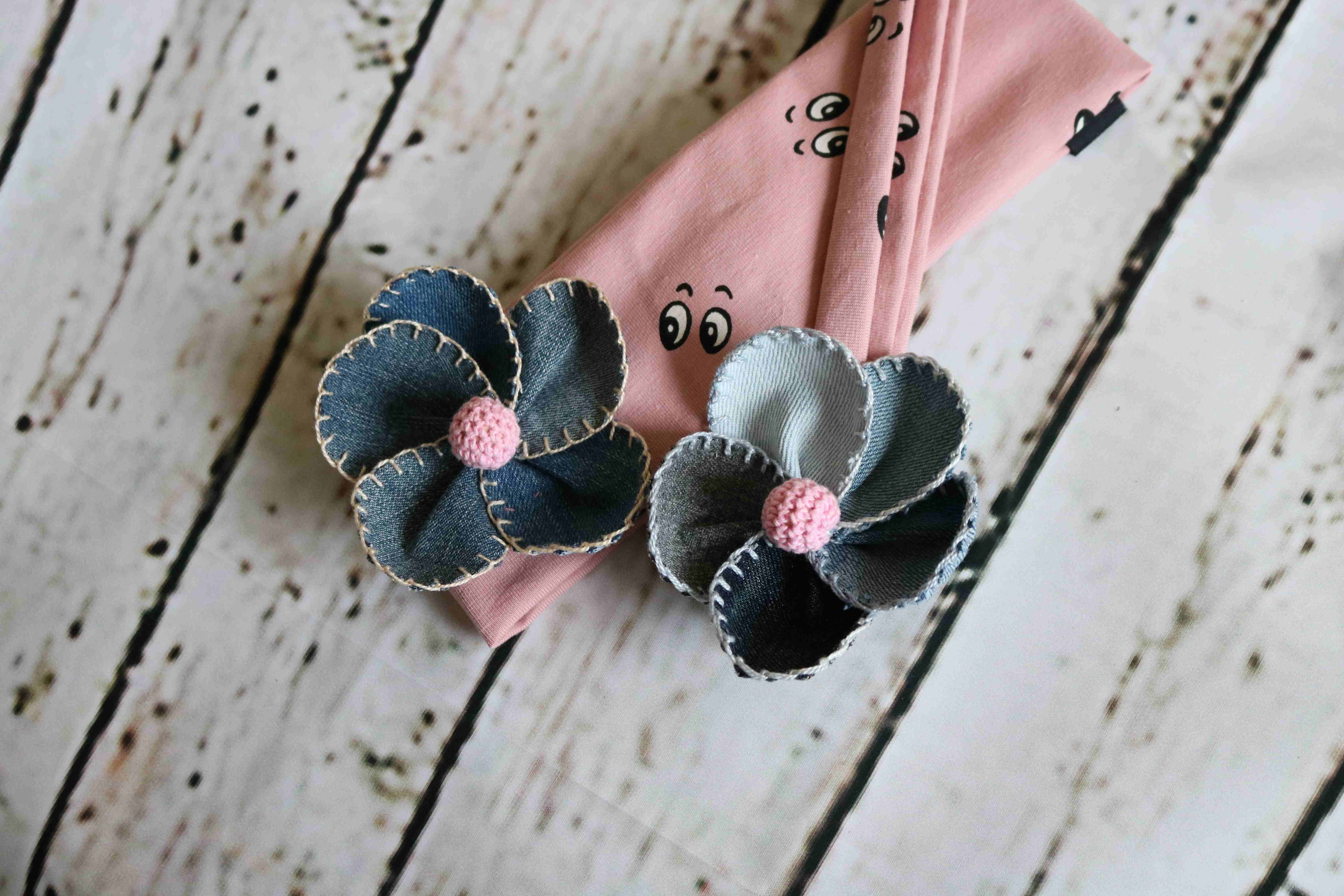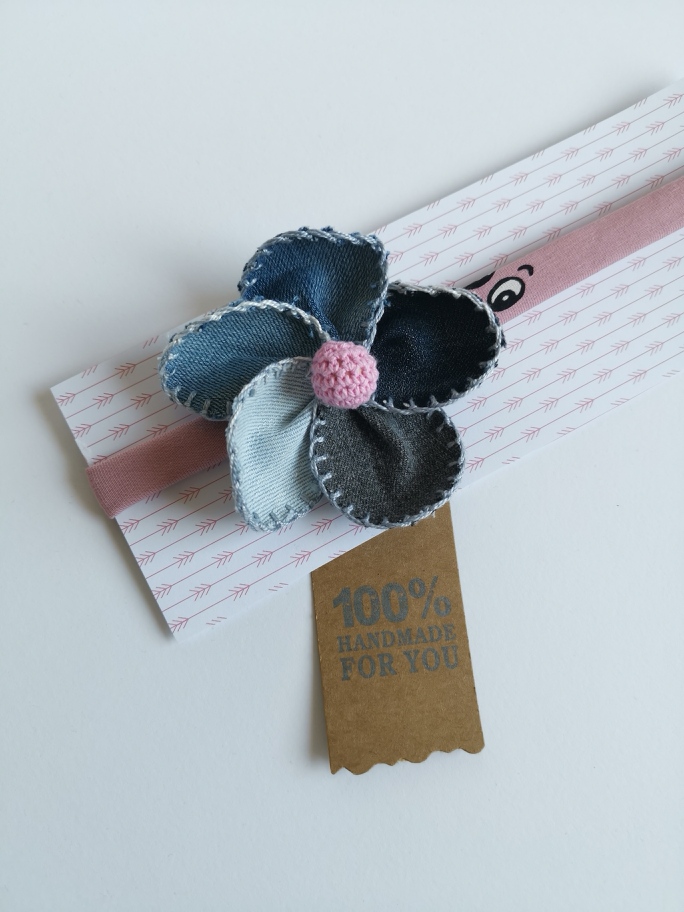 Unikaten trak z ročno izdelano cvetlico iz jeansa, kot pika na i vsakemu “outfit-u” za modne gospodične.