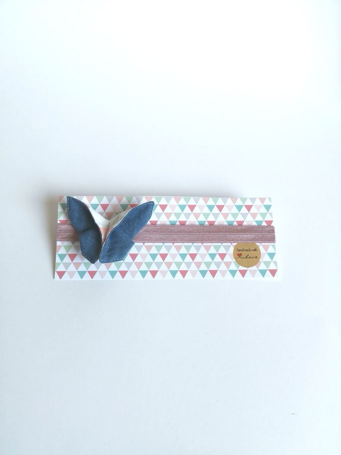 Okrasni trakec z unikatnim metuljčkom za glavice malih modnih navdušenk.