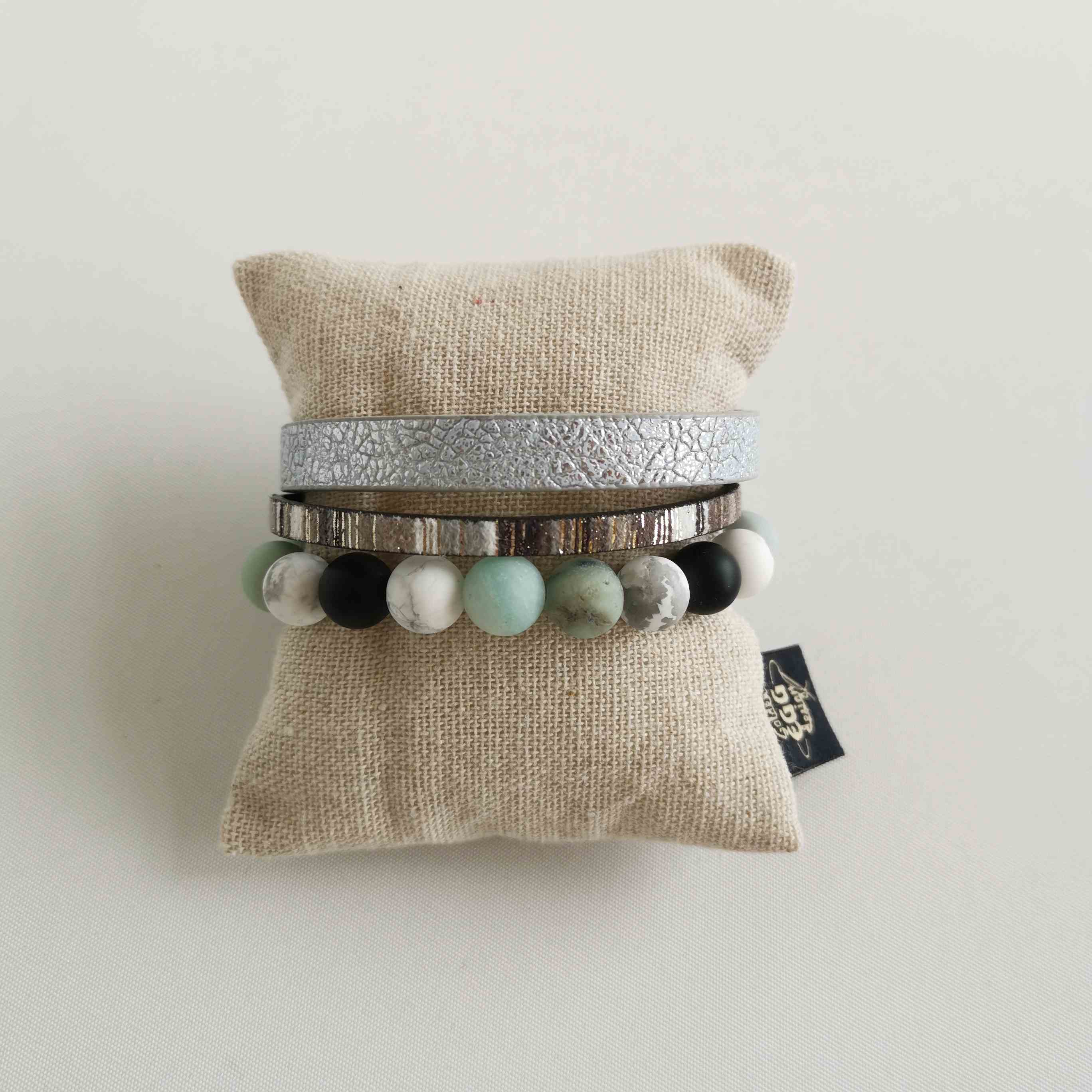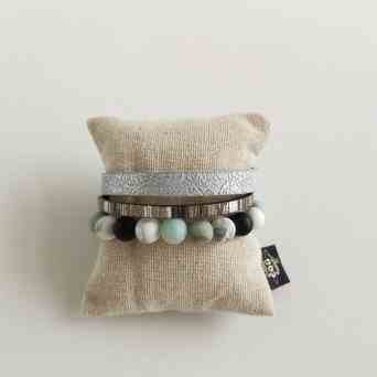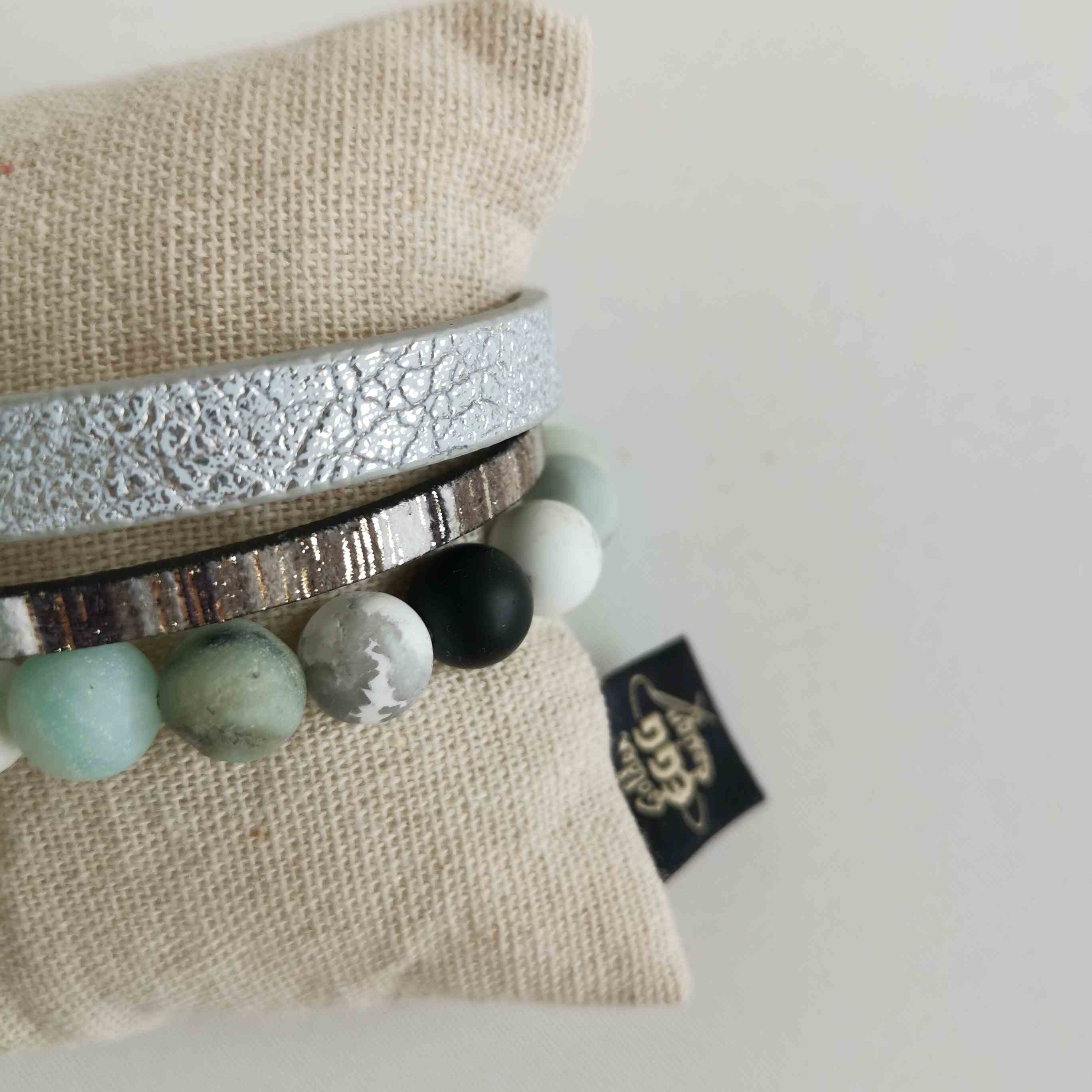 Zapestnica v kombinaciji naravnih kamnov in usnja.