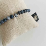 Moška zapestnica iz manjših naravnih kamnov v sivi barvi razpokanega izgleda.